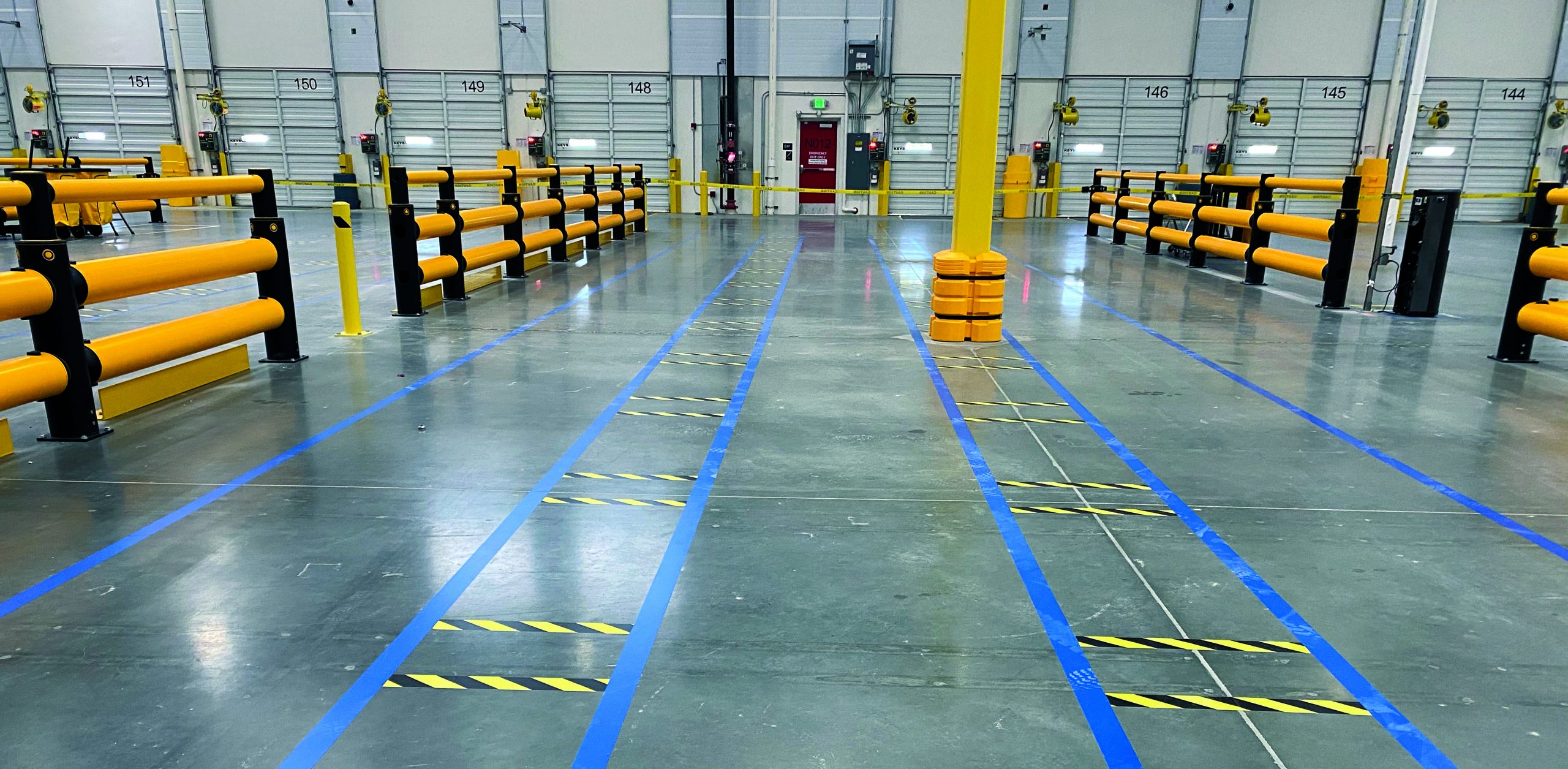 We also offer permanent and temporary floor stripping for social distancing, warehouse walkways, storage areas, and fire marshal compliance.